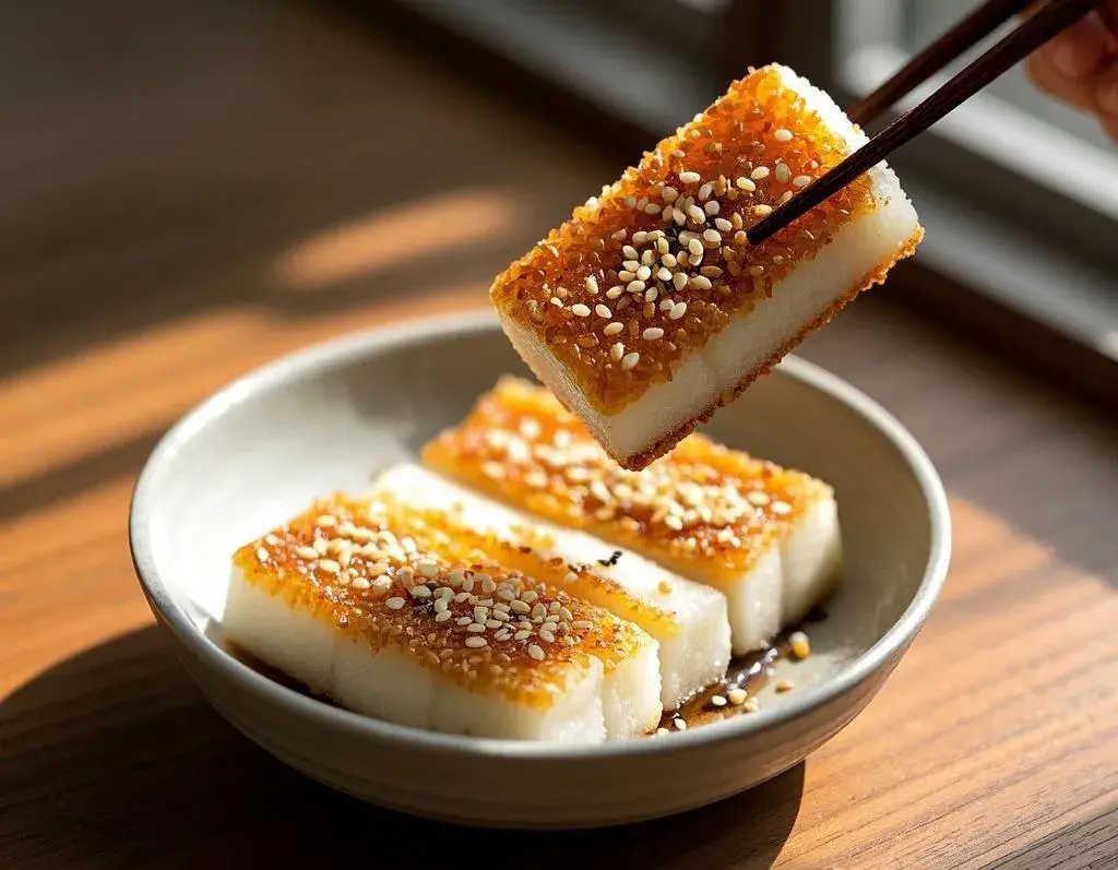 一大早,厨房里就飘出了熟悉的香味。妈妈从橱柜里拿出雪白的年糕,切成薄片,在油锅里轻轻一煎,不一会儿,那原本软嫩的年糕就变得金黄酥脆,咬上一口,外酥里糯,香甜的味道瞬间在嘴里散开。